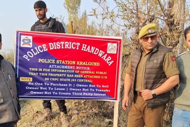 Handwara , 08 November- Police in Handwara after obtaining attachment order passed by Hon'ble Additional Sessions Court Handwara attached properties (9 Kanals,11 Marlas ) land worth crores belonging to terror…